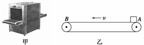 4、选择题 如图甲为应用于机场和火车站的安全检查仪,用于对旅客的行李进行安全检查.其传送装置可简化为如图乙的模型,紧绷的传送带始终保持v=1 m/s的恒定速率运行.旅客把行李无初速度地放在A处,设行李与传送带之间的动摩擦因数μ=0.1,A、B间的距离为2 m,g取10 m/s2.若乘客把行李放到传送带的同时也以v=1 m/s的恒定速率平行于传送带运动到B处取行李,则(? )