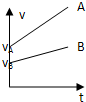 5、选择题 如图所示为A.B两质点的速度-时间图象,其加速度分别为aA,aB,在零时刻的速度分别为vA,vB那么判断正确的是( )