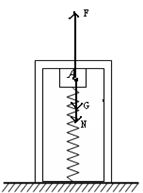 1、计算题 如图所示,水平桌面上放一重为200 N的木箱(箱口朝下),箱内有一下端固定于桌面的轻质弹簧,其劲度k =" 1000" N/m,弹簧将重15 N的木块A顶到箱顶(与箱内壁接触),此时弹簧被压缩了4 cm.画出木块受力示意图,并求出各力的大小.