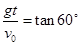 5、填空题  小球从空中以某一初速度水平抛出,落地前1s时刻,速度方向与水平方向夹角为300,落地时速度方向与水平方向夹角为600,g取10m/s2,小球在空中运动时间?,抛出的初速度?