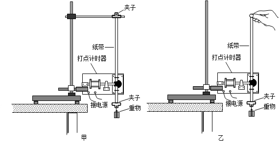 本题解析:(1)甲好一些.理由:因为用夹子固定纸带,可以避免乙图中用手握住纸带的弊端,一方面,由于手的抖动会造成纸带上的第一个点迹被拖长或位置不能确定;另一方面,用夹子固定纸带,便于将纸带调整为竖直方向,以避免纸带与打点计时器限位孔之间产生过大的摩擦