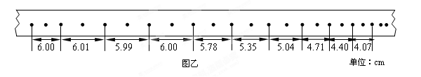 ④使电动小车以额定功率加速运动,达到最大速度一段时间后关闭小车电源,待小车静止时再关闭打点计时器(设小车在整个过程中小车所受的阻力恒定)。在上述过程中,打点计时器在纸带上所打的部分点迹如图乙所示。请你分析纸带数据,回答下列问题: