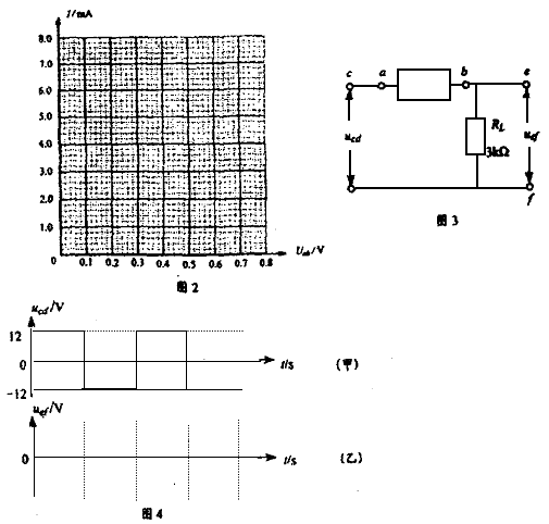 (3)若将此黑箱接入图3电路中,并在该电路的cd两端输入如图4(甲)所示的方波电压信号Ucd,请在图4(乙)中定性画出负载电阻RL上的电压信号Uef的波形。