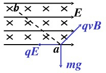 3、选择题 如图所示,某空间存在正交的匀强电场和运强磁场,电场方向水平向右,磁场方向垂直纸面向里,一带电微粒由a点进入该空间并刚好能沿ab直线向上运动,下列说法正确的是( )