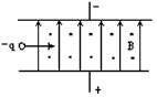 5、填空题 如图所示,质量为m,带电量为+q的粒子,从两平行电极板正中央垂直电场线和磁感线以速度v飞入。已知两板间距为d,磁感强度为B,这时粒子恰能直线穿过电场和磁场区域(重力不计)。今将磁感强度增大到某值,则粒子将落到极板上。当粒子落到极板上时的动能为______。