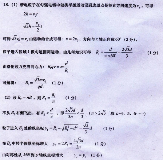 小题2:若区域Ⅱ内磁感应强度B2的大小是B1的整数倍,当粒子再次回到y轴时坐标可能值为多少?