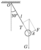 1、选择题 如图所示,用一根长为l的细绳一端固定在O点,另一端悬挂质量为m的小球A,为使细绳与竖直方向夹30°角且绷紧,小球A处于静止,对小球施加的最小的力是(? )