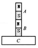 4、选择题 如图所示,重力大小都是G的A、B条形磁铁,叠放在水平木板C上,静止时B对A的弹力为F1,C对B的弹力为F2,则: