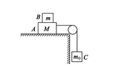 1、选择题 A、B、C三物块质量分别为M、m和m0,作如右图所示的连接,绳子不可伸长,且绳子和滑轮的质量、绳子和滑轮的摩擦均可不计,若B随A一起沿水平桌面做匀速运动,则可以判断( )