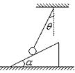 4、计算题 如图所示,小球被轻质细绳系住斜吊着放在静止的光滑斜面上,设小球质量m=1kg,斜面倾角,悬线与竖直方向夹角