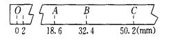 ( 1 )所用重锤的质量m=1.0kg,打点计时器所用电源频率50Hz,打下的纸带如右图所示(图中的数据为从起始点O到该点的距离),则 在打B点时,重锤的速度=_____________m/s,重锤的动能