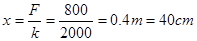 本题解析:图像的斜率表示弹簧的劲度系数,所以,故当弹簧受F=800N的拉力作用时,弹簧的伸长量为