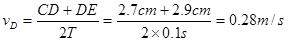 ①如果测得C、D两点间距S4=2.70cm,D、E两点间距S5=2.90cm,则据此数据计算在打D点时小车的速度公式为?,小车的速度值vD=?m/s。(保留三位有效数字)