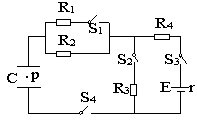 1、选择题 如图所示的电路中,开关S1、S2、S3、S4均闭合,C是极板水平放置的平行板电容器,极板间悬浮着一油滴P,欲使P向上运动,应断开电键