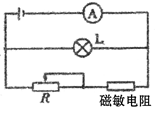 5、选择题 .已知磁敏电阻在没有磁场时电阻很小,有磁场时电阻变大,并且磁场越强阻值越大.为探测磁场的有无,利用磁敏电阻作为传感器设计了如图所示电路,电源的电动势E和内阻r不变,在没有磁场时调节变阻器R使电灯L正常发光,若探测装置从无磁场区进入强磁场区.则