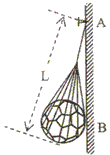 2、计算题 沿光滑的墙壁用网兜把一个足球挂在A点(如图),足球重为10N,网兜的重量不计。足球与墙壁的接触点为B,悬绳与墙壁的夹角为30°。则悬绳的拉力和墙壁对球的支持力各为多少?
