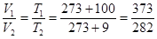 5、填空题 一定质量的理想气体,在压强不变的条件下,它在100℃时的体积和9℃时的体积之比是?。它在0℃时的热力学温度是?K。