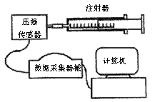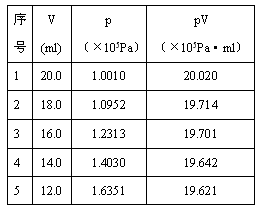 3、实验题 有同学在做“研究温度不变时气体的压强跟体积的关系”实验时,用连接计算机的压强传感器直接测得注射器内气体的压强值,缓慢推动活塞,使注射器内空气柱从20.0ml变12.0ml。实验共测了5次,每次体积值直接从注射器的刻度上读得并输入计算机。同时由压强传感器测得对应体积的压强值。实验完成后,计算机屏幕上立刻显示出如下表中的实验结果。?