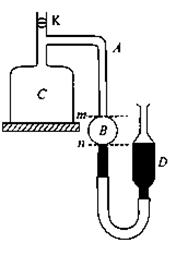 a.打开阀门K,使管A、容器C、容器B和大气相通。上下移动D,使水银面与刻度n对齐;