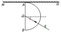 ,直径AB与屏幕垂直并接触于A点。激光a以入射角i=30°射向半圆玻璃砖的圆心O,结果在水平屏幕MN上出现两个光斑。求:
