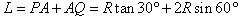 由几何知识得,ΔOPQ为直角三角形,所以两个光斑PQ之间的距离: