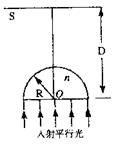 (2)(10分)如图所示,一束截面为圆形(半径R=lm)的平行紫光垂直射向一半径也为R的玻璃半球的平面,经折射后在屏幕S上形成一个圆形亮区,屏幕S至球心距离为D=