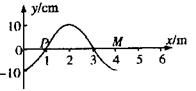 5、计算题 一列简谐横波沿x轴正向传播,波传到x=lm的P点时P点开始向y轴负方向振动,从此刻开始计时,已知在t=0.4s时PM间第一次形成图示波形,此时x=4m的M点正好在波谷。下列说法中正确的是(?)