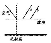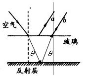 4、选择题 如图所示,一光束包含两种不同频率的单色光,从空气射向两面平行玻璃砖的上表面,玻璃砖下表面有反射层,光束经两次折射和一次反射后,从玻璃砖上表面分为a、b两束单色光射出.下列说法正确的是