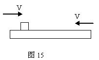 (2)将一个质量为3Kg的木板置于光滑水平面上,另一质量为1Kg的物块放在木板上,已知物块和木板之间有摩擦,而木板足够长,若两者都以大小为4m/s的初速度向相反方向运动(如图15所示)则当木板的速度为2.4m/s时,物块的速度为多少?是在加速还是正在减速?
