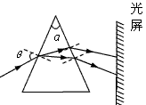 5、选择题 如图所示,截面为等腰三角形的棱镜顶角α=41.30°,一束白光以较大的入射角θ从棱镜的一侧射入,通过棱镜后从另一个侧面射出,在光屏上形成由红到紫的彩色光带。当入射角θ逐渐减小到零的过程中,请根据下表中该棱镜材料对各种色光的折射率和发生全反射的临界角,判断光屏上彩色光带的变化情况( ? )