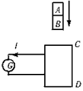 1、选择题 如图所示,螺线管CD的导线绕法不明。当磁铁AB插入螺线管时,电路中有图示方向的感应电流产生。下列关于螺线管极性的判断正确的是?