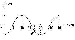 3、填空题 沿x轴负方向传播的简谐波,t=0时刻的波形图如图所示,已知波速为10m/s,质点P的平衡位置为x=17m,P点振动频率为__________Hz,则P点至少再经__________s可达波峰。