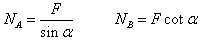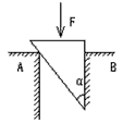 5、计算题 表面光滑、质量不计的尖劈插在缝A、B之间,如图所示,在尖劈背上加一压力F,求尖劈对A侧的压力和对B侧的压力。