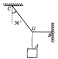 1、选择题 如图所示,OA、OB、OC是三条完全一样的绳子,其中OB处于水平方向,OC与竖直方向的夹角为30°,当重物的质量不断增加时,最先断的绳子是
