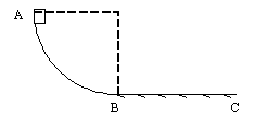 4、计算题 如图所示,轨道ABC的AB段是半径R=0.8m的光滑的圆弧轨道,BC段为粗糙水平面,滑块从A点由静止开始下滑,在水平面上运动了1.6m后停止于C点。己知弧形轨道与水平轨道相切,空气阻力不计。取g=10m/s2,