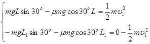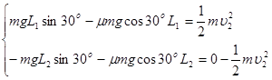 ⑶设质点第2次由B点沿斜面上滑的速度为,沿斜面上滑的距离为L2.则
