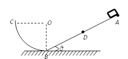2、计算题 如图所示,倾角θ=300、长L=2.7m的斜面,底端与一个光滑的1/4圆弧平滑连接,圆弧底端切线水平。一个质量为m=1kg的质点从斜面最高点A沿斜面下滑,经过斜面底端B恰好到达圆弧最高点C,又从圆弧滑回,能上升到斜面上的D点,再由D点由斜面下滑沿圆弧上升,再滑回,这样往复运动,最后停在B点。已知质点与斜面间的动摩擦因数为μ=/6,g=10m/s2,假设质点经过斜面与圆弧平滑连接处速率不变。求: