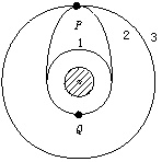 1、选择题 发射地球同步卫星时,先将卫星发射至近地圆轨道1,然后经点火,使其沿椭圆轨道2运行,最后再次点火,将卫星送入同步圆轨道3。轨道1、2相切于Q点,轨道2、3相切于P点,则当卫星分别在1、2、3轨道上正常运行时,以下说法正确的是