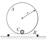 4、选择题 如图所示,A是半径为r的圆形光滑轨道,固定在木板B上,竖直放置;B的左右两侧各有一光滑挡板固定在地面上,使其不能左右运动,小球C静止放在轨道最低点,A,B,C质量相等。现给小球一水平向右的初速度v0,使小球在圆型轨道的内侧做圆周运动,为保证小球能通过轨道的最高点,且不会使B离开地面,初速度v0必须满足(?)(重力加速度为g)