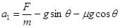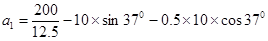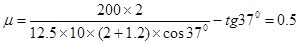 3、计算题 如图所示,倾角θ为37°的粗糙斜面被固定在水平地面上,质量为 12.5kg的物块,在沿平行于斜面向上的拉力F作用下从斜面的底端由静止开始运动,力F作用2s后撤去,物体在斜面上继续上滑1.2s后,速度减为零,已知F=200 N。求:
