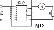 3、选择题 如图12所示,一理想变压器原线圈匝数为n1=1000匝,副线圈匝数为n2=200匝,将原线圈接在u=200sin120πt(V)的交流电压上,电阻R=100Ω,电流表