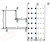 本题解析:根据右手定则判断出不同阶段电动势的方向,以及根据E=BLv求出不同阶段的电动势大小.刚进磁场时,只有bc边切割;bc边进入QR区域时,bc边和de边都切割磁感线,但等效电动势为0;bc边出磁场后,de边和af边切割磁感线,af边切割产生的电动势大于bc边;de边出磁场后后,只有af边切割.