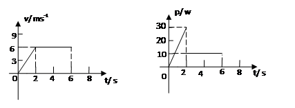 1、选择题  放在水平地面上的物体受到水平拉力的作用,在0~6s内其速度与时间图象和拉力的功率与时间图象如图所示,则物体的质量为(取g=10m/s2)