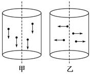 3、选择题 为模拟空气净化过程,有人设计了如图所示的含灰尘空气的密闭玻璃圆桶,圆桶的高和直径相等.第一种除尘方式是:在圆桶顶面和底面间加上电压U,沿圆桶的轴线方向形成一个匀强电场,尘粒的运动方向如图甲所示;第二种除尘方式是:在圆桶轴线处放一直导线,在导线与桶壁间加上的电压也等于U,形成沿半径方向的辐向电场,尘粒的运动方向如图乙所示.已知空气阻力与尘粒运动的速度成正比,即f=kv(k为一定值),假设每个尘粒的质量和带电荷量均相同,初速度和重力均可忽略不计,不考虑尘粒之间的相互作用,则在这两种方式中( )