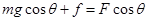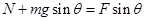 本题解析:分析磨石的受力,有重力mg,弹力N(垂直于斜壁向下),摩擦力f(沿斜壁向下),外力F四个力。把这四个力沿斜壁和垂直于斜壁方向正交分解,由于物体处于平衡状态,在沿斜壁方向有,垂直于斜壁方向有,根据,可得选项A正确。