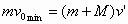 解法二:电子和氢原子作完全非弹性碰撞时,损失的动能最多.故电子和氢原子作完全非弹性碰撞,电子的初动能是电子的最小初动能.设电子和氢原子完全非弹性碰撞结束时二者的共同速度为v′,由动量守恒定律,有:
