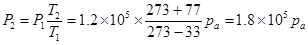 2、选择题 在寒冷的冬天气温零下33℃,某钢瓶内的液化气将用完时内部气体压强为1.2×105pa,现用热水加热液化气钢瓶使瓶内气压上升,以便继续使用一段时间。已知热水温度77℃,则加热后瓶内气体压强约为