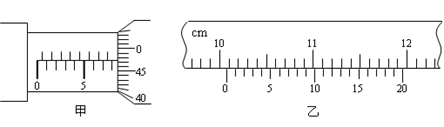 3、实验题 用螺旋测微器(千分尺)测小球直径时,示数如图甲所示,这时读出的数值是___________mm;用游标卡尺(卡尺的游标有20等分)测量一支铅笔的长度,测量结果如图乙所示,由此可知铅笔的长度是________cm。