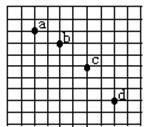 5、实验题 如图所示,在“研究平抛物体运动”的实验中,用一张印有小方格的纸记录轨迹,小方格的边长为。若小球在平抛运动途中的几个位置如图中的a、b、c、d所示,则小球平抛的初速度的计算式为