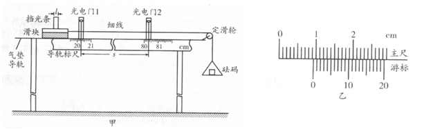1、填空题 利用气垫导轨验证机械能守恒定律,实验装置示意图如图甲所示:
